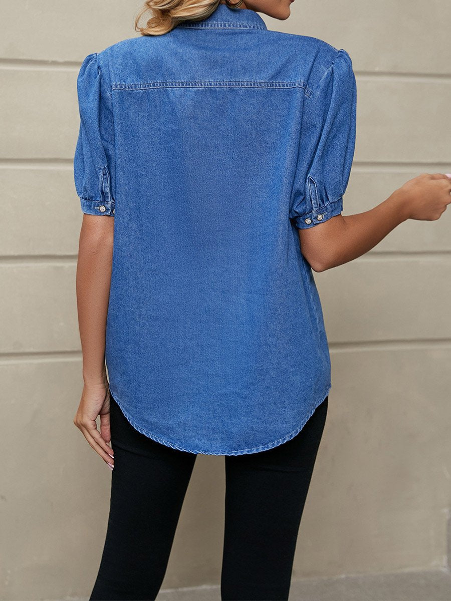Women's Princess Sleeve Lapel Thin Denim Shirt
