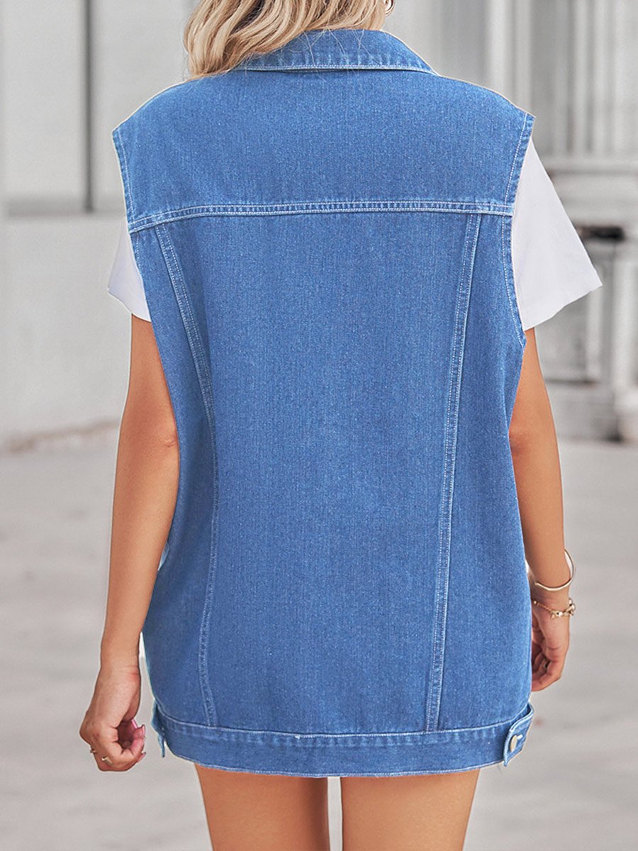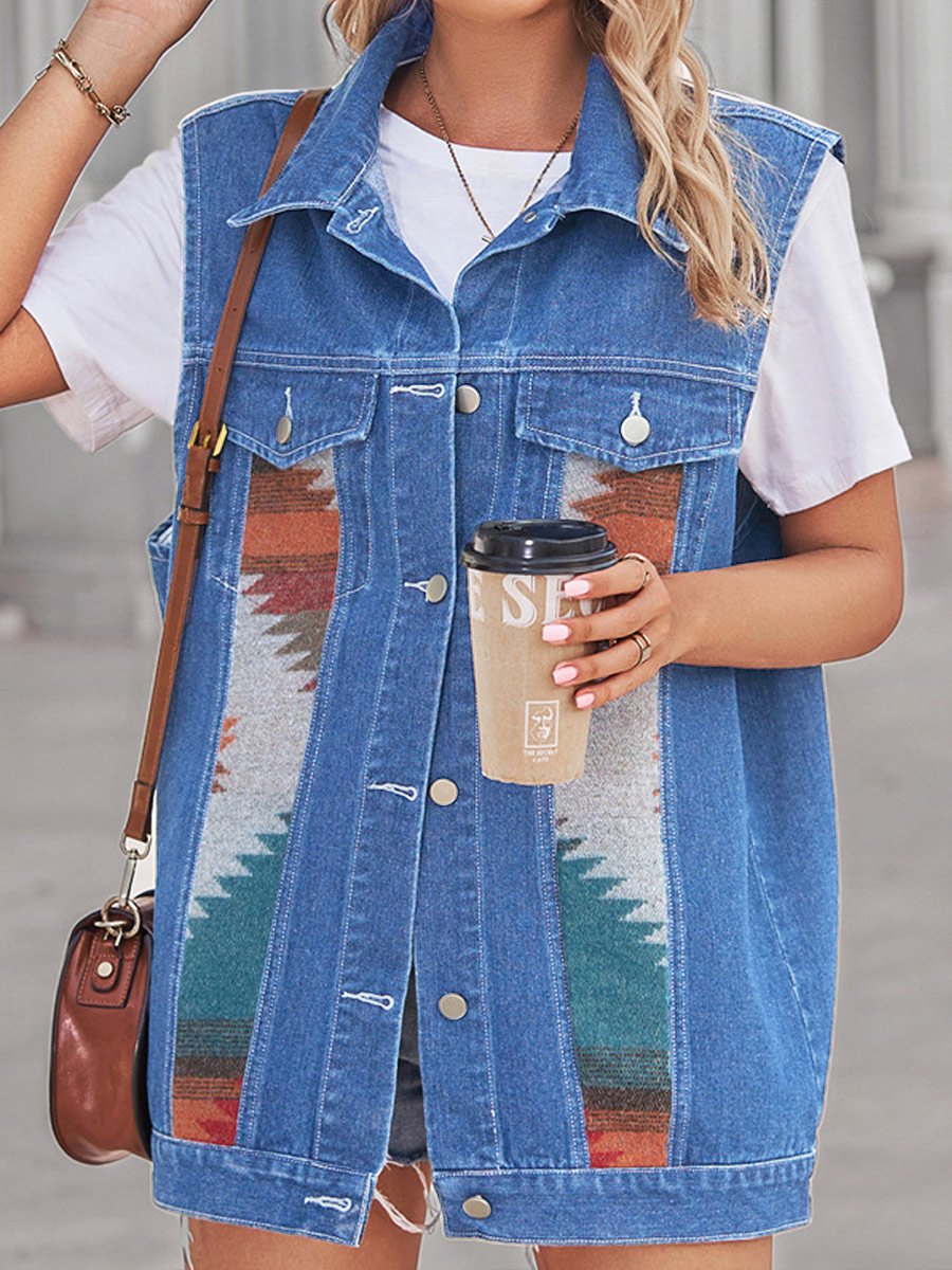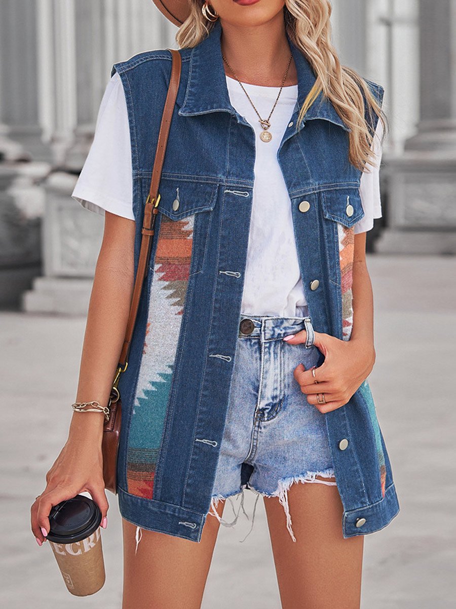 Women's Retro Geometric Colorblock Denim Vest