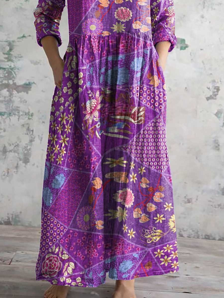 Women's Retro Geometric Floral Print Casual Cotton Dress