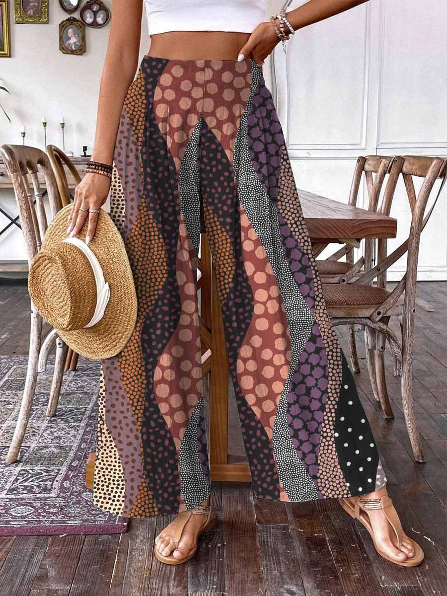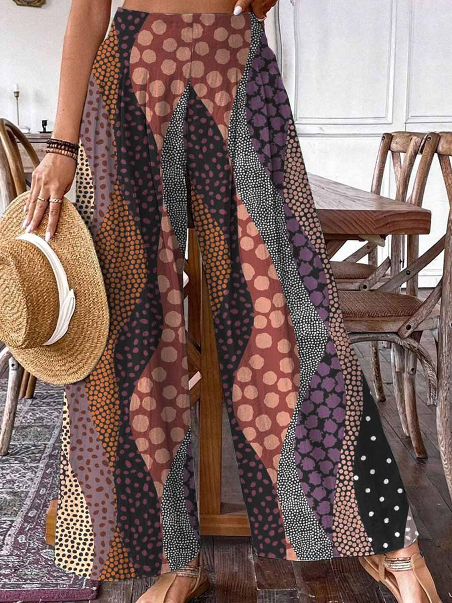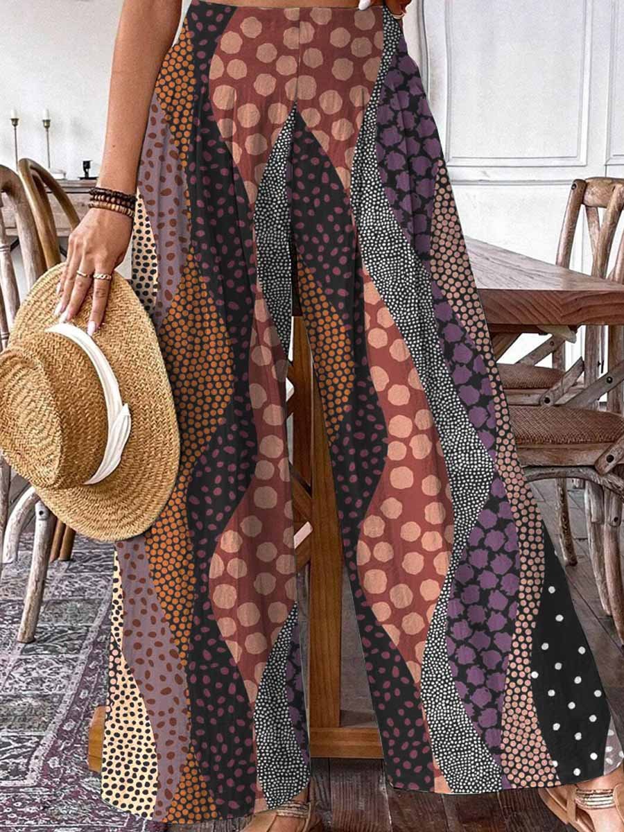 Women's Retro Irregular Polka Dot Print Pattern Cotton Wide Leg Pants