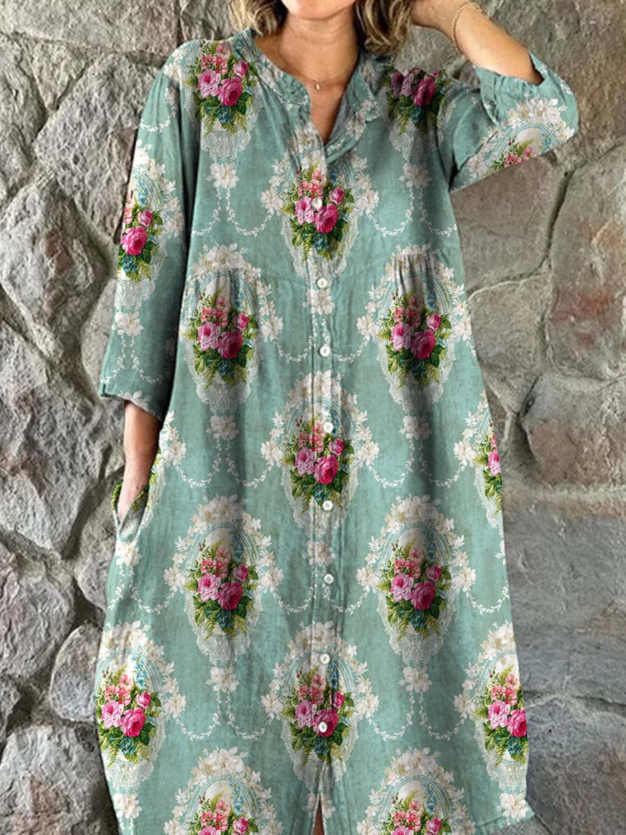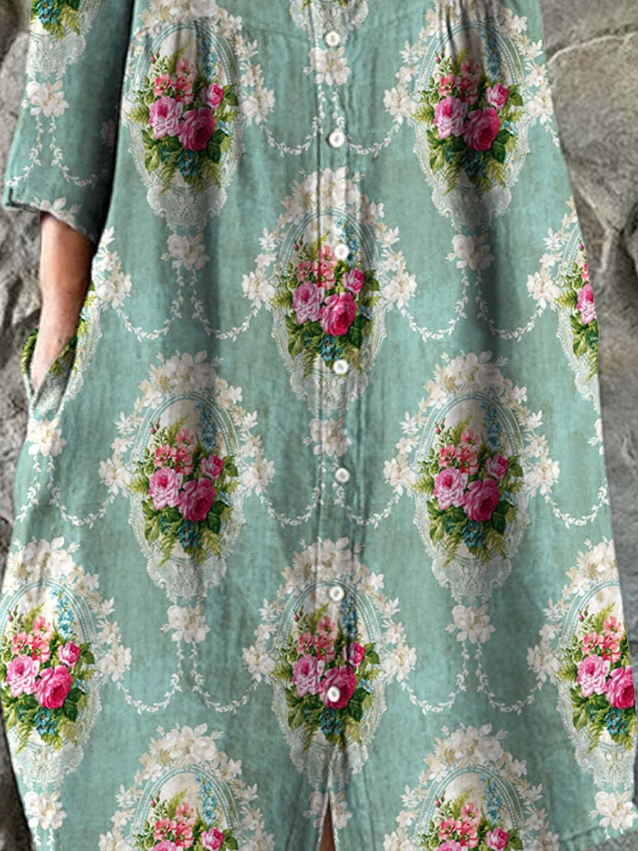 Women's Roses Floral Art Print Elegant Simple Cotton Shirt Dress