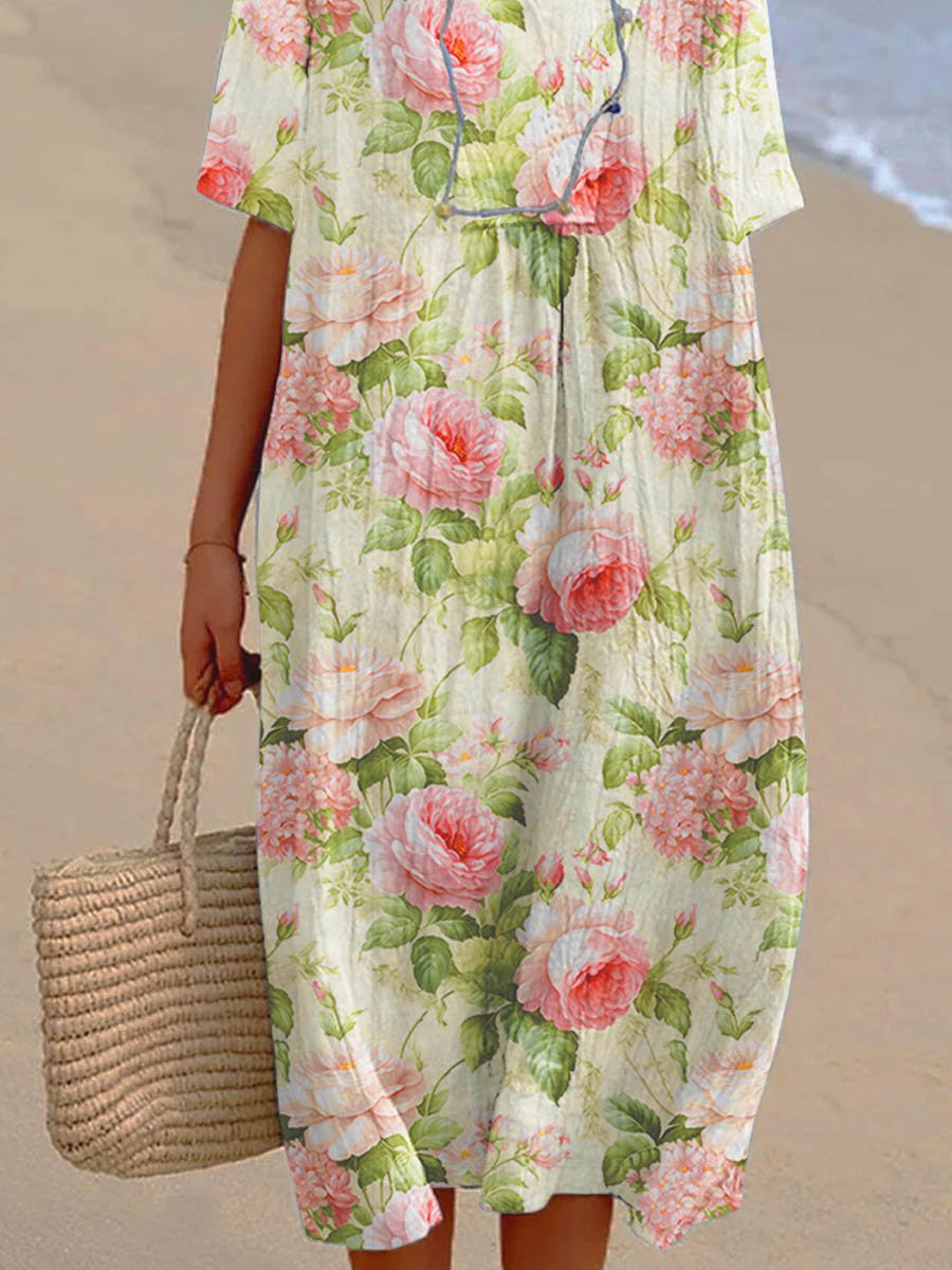 Women's Short Sleeve Floral Irregular Pattern Art Dress