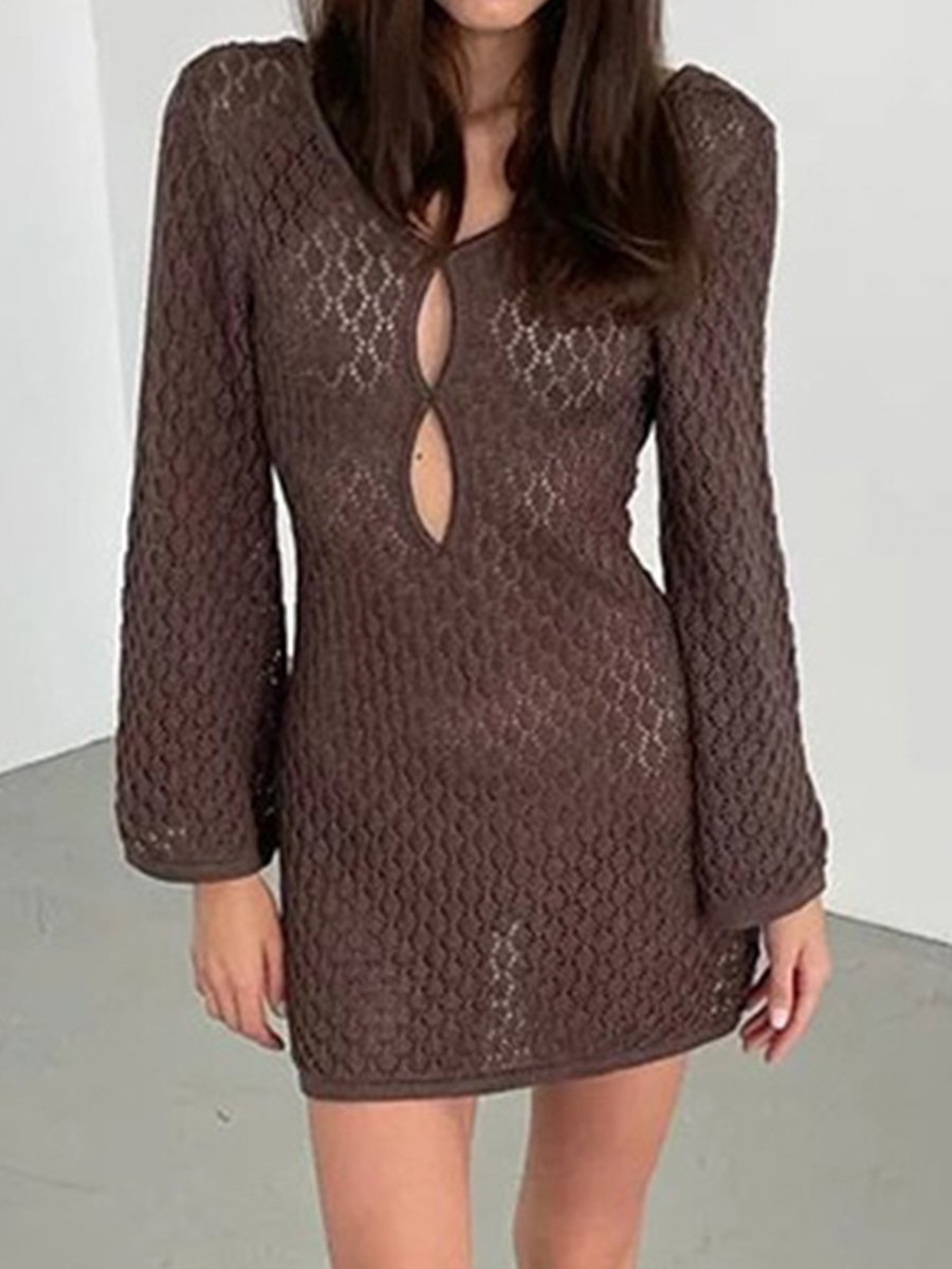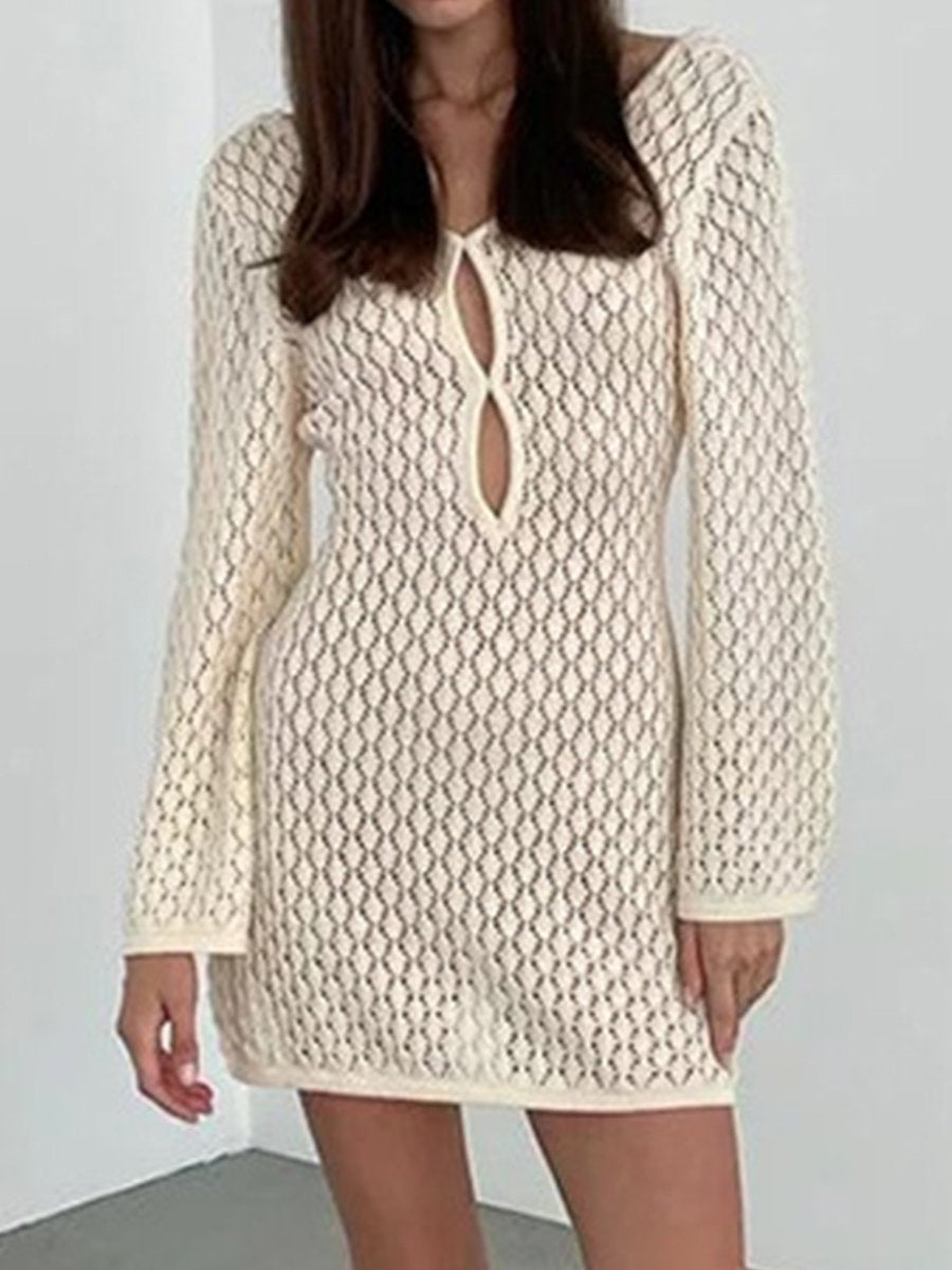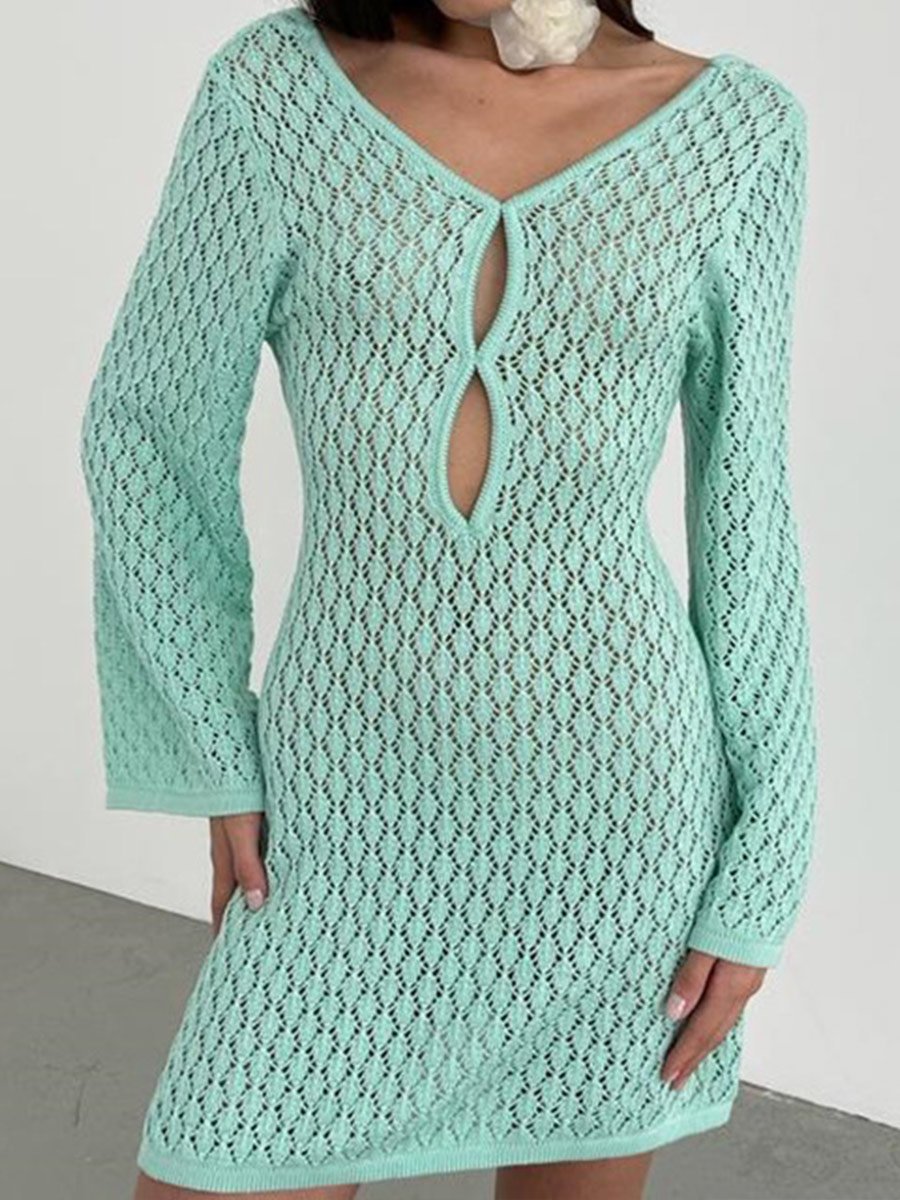 Women's Solid Color Knitted Cutout Bikini Cover Up