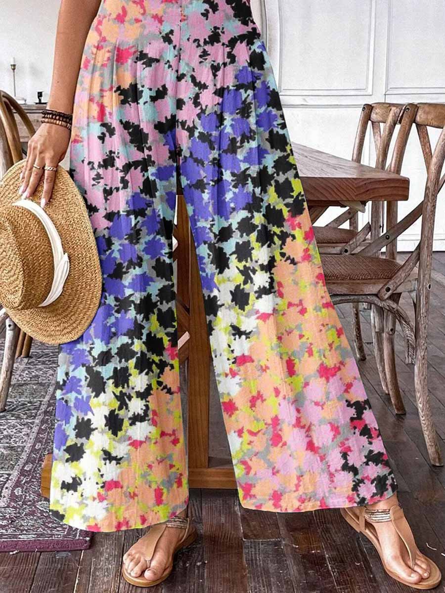 Women's Summer Floral Print Pattern Cotton Wide Leg Pants