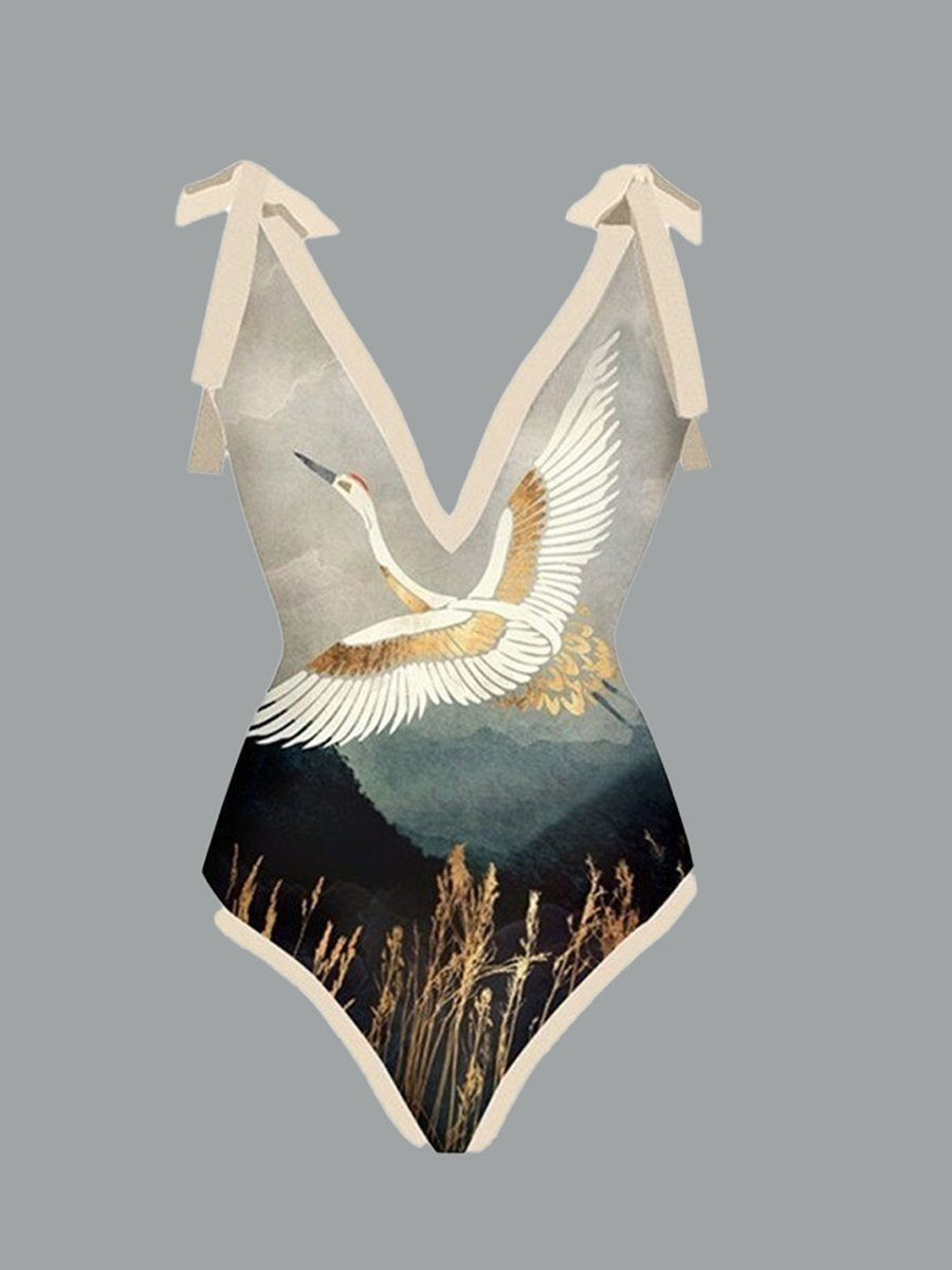 Women's Swimsuit Retro Printed Chiffon Maxi Skirt