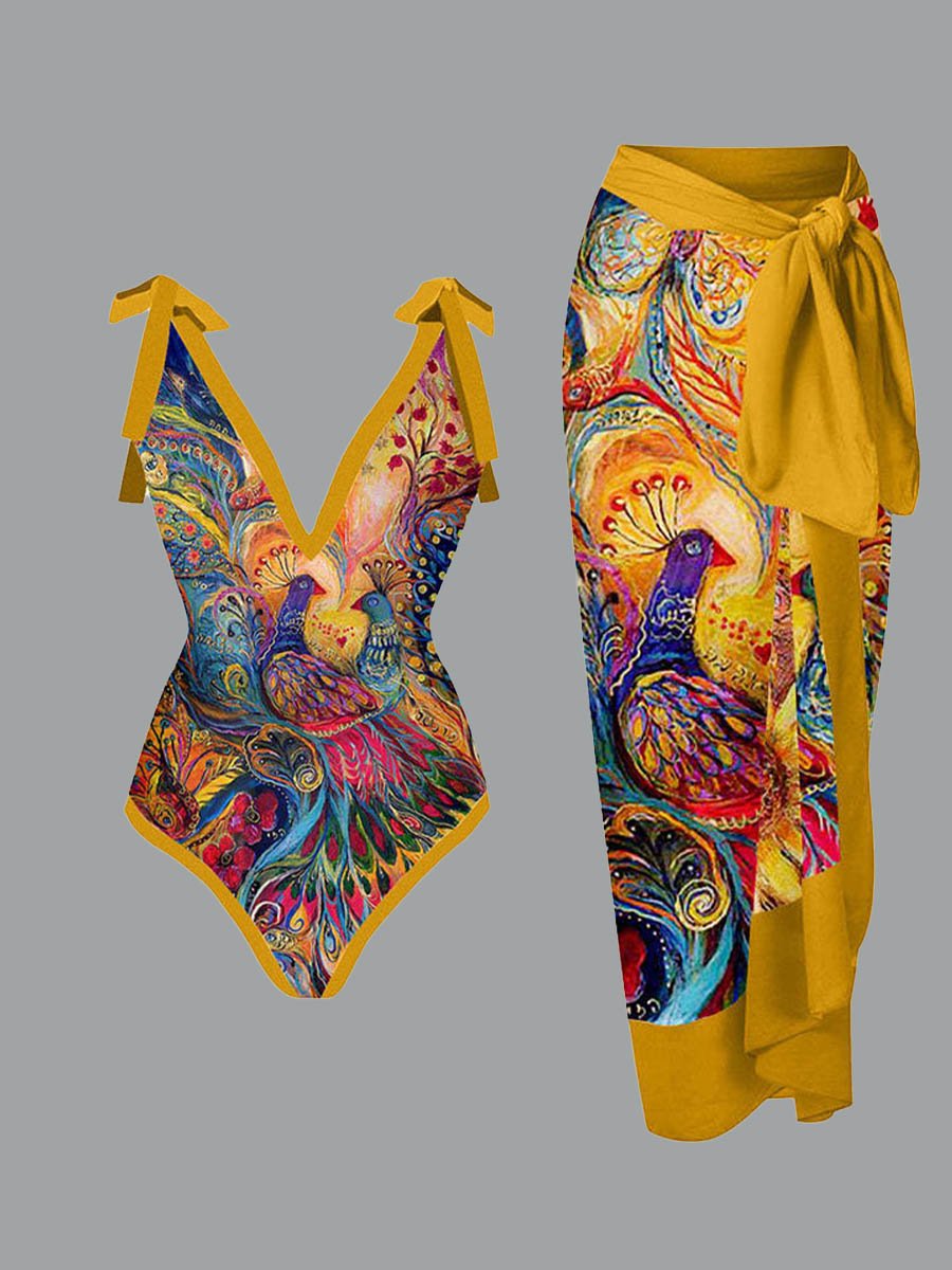 Women's Swimsuit Retro Printed Chiffon Maxi Skirt