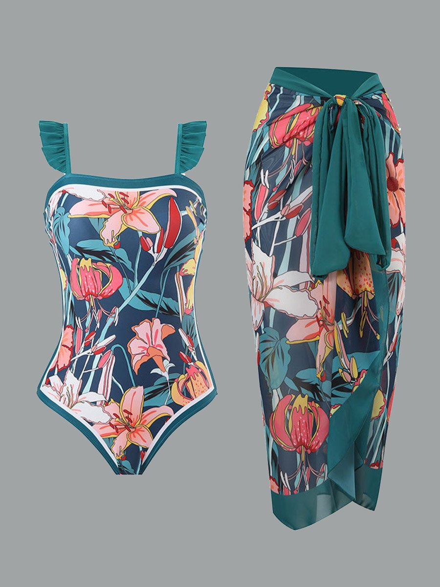 Women's Swimsuit Retro Printed Chiffon Maxi Skirt