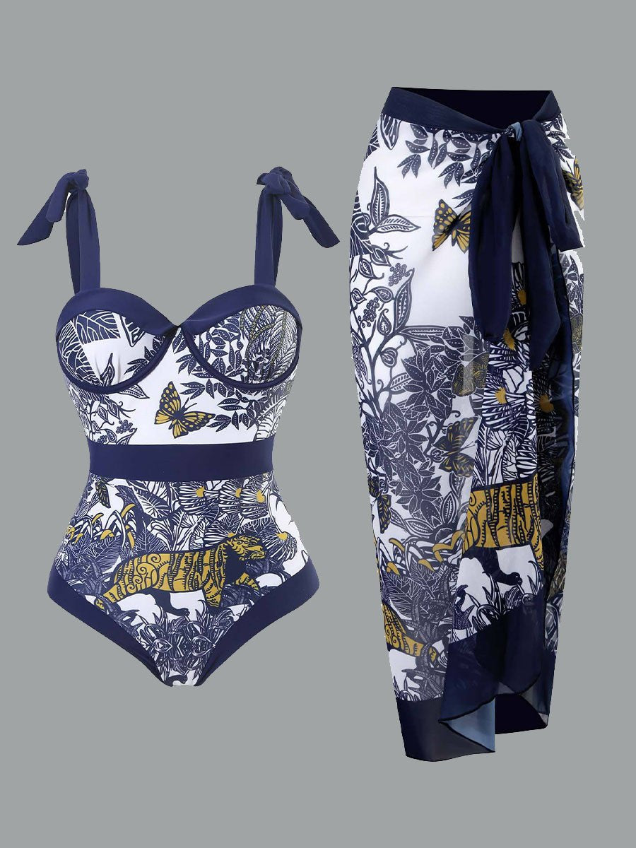 Women's Swimsuit Retro Printed Chiffon Maxi Skirt