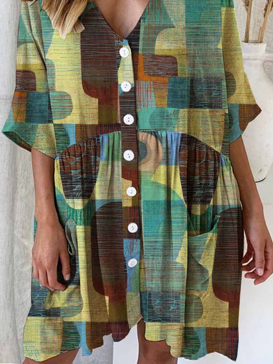 Women's Vintage Art Bohemian Geometric Pattern Dress