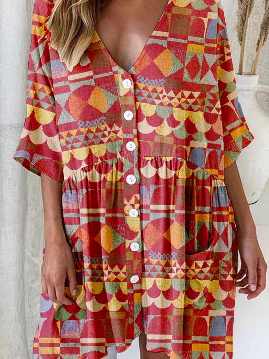 Women's Vintage Art Bohemian Geometric Pattern Dress